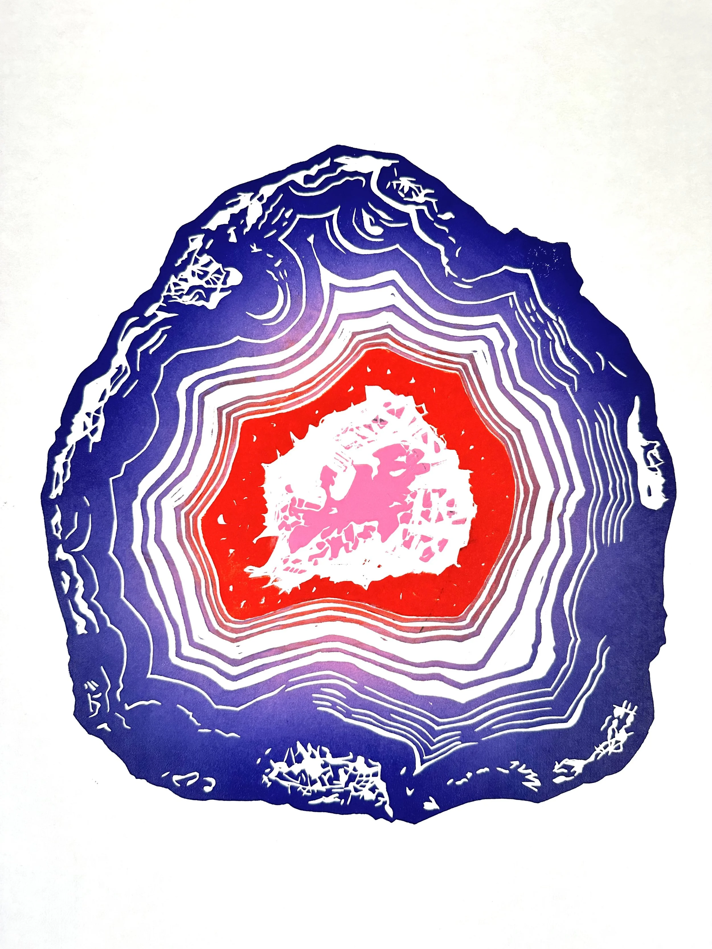 Categories: All Abstract Gem Prints All New All | Abstract Gem Prints | All | New | 'Agate' lino-cut limited edition print_purple, red, pink €150.00 'Vibrations of Light' Limited Edition Linocut Print €150.00 'Pavilions' Limited Edition Linocut print €150.00 'Pavilions Symmetry' Limited Edition Linocut Print €150.00
